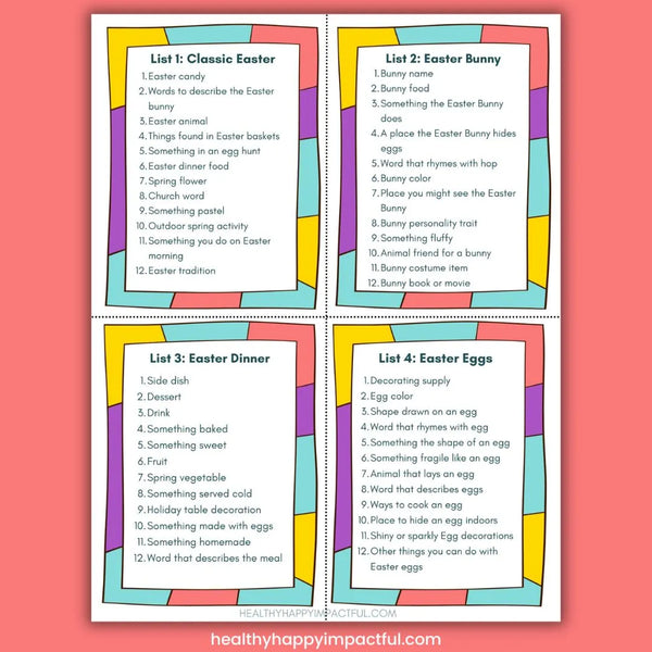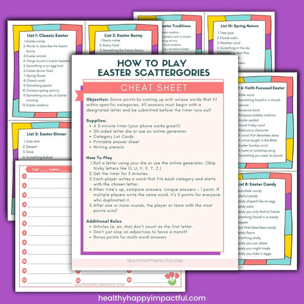 Use this fun Easter Scattergories game to get family and friends connecting (and laughing uncontrollably)! In fact, we love playing it at family night or anytime we need an easy game!