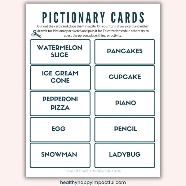 *These cards can also be used for Pictionary and Telestrations (telephone Pictionary)