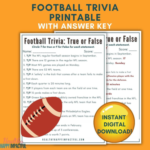 Instantly download this Football trivia PDF! It’s a fun true or false quiz that kids and adults will love playing together.